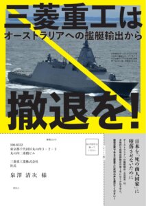 ◆ 武器輸出中止を求めるはがき投函の呼びかけ